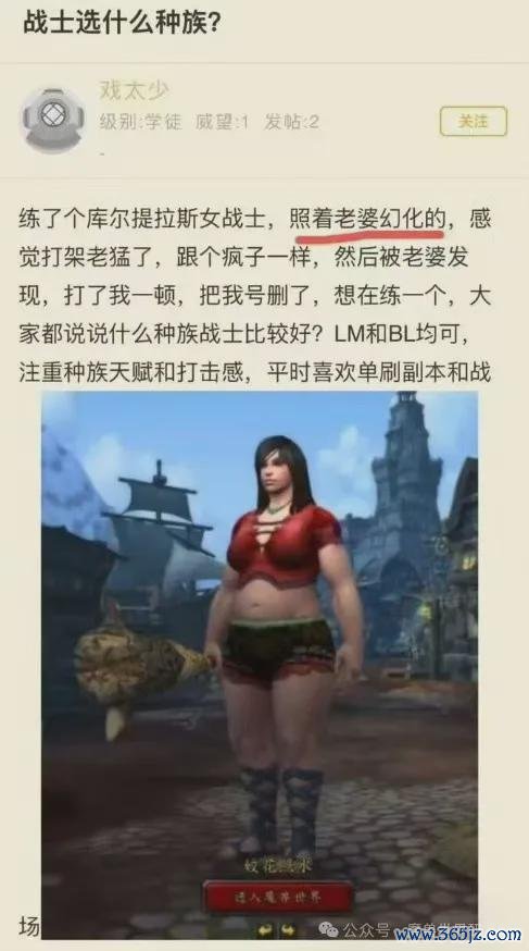 股票的杠杆 魔兽老哥照着老婆捏幻化!被老婆发现暴打删号!